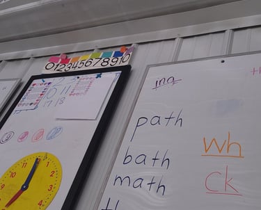 This is what a typical day may look like. Arrival @9AM, we do devotions,work on phonics and Arithmetic. Recess @9:45 come in @10 We do more phonics and Arithmetic with learning songs + specials. Snack time (provided by you) is @ 10:45 then outside recess for 25-30minutes . When we come back in we review everything learned but don't normally do any more pencil work. Dismissal @12.